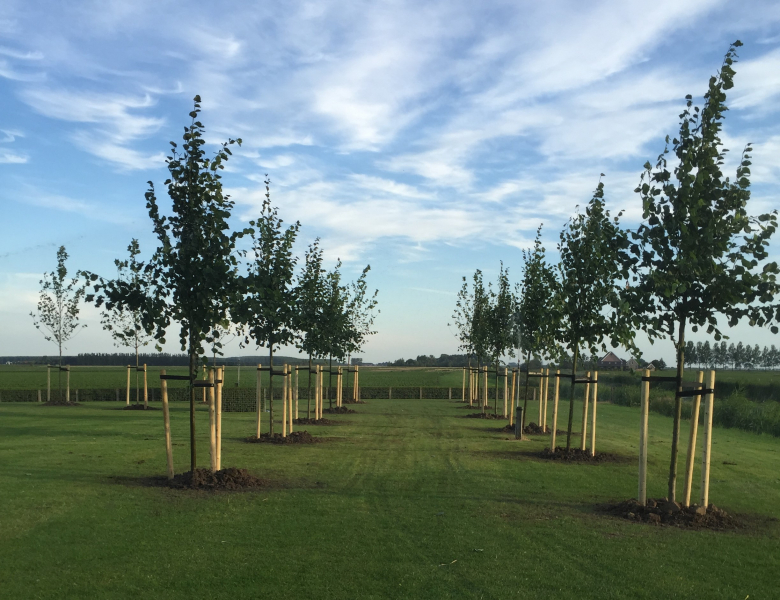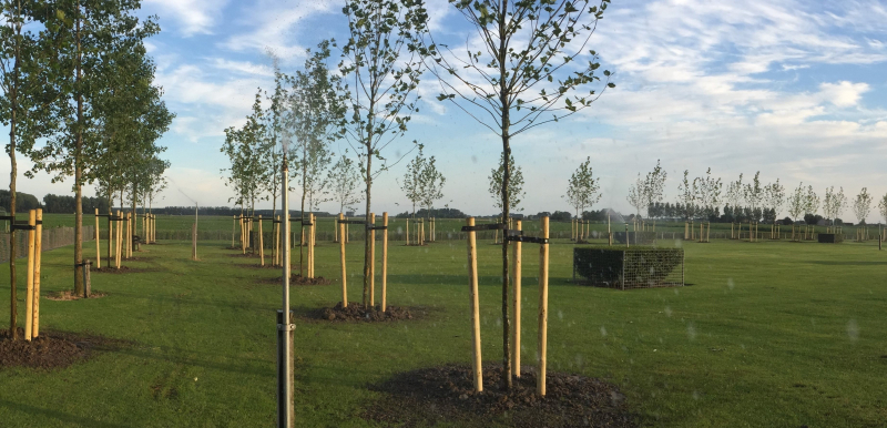 van een kale vlakte naar een perceel met prachtige bomen die de wind wat afremt, dat was het idee van de klant. zeer geslaagd!